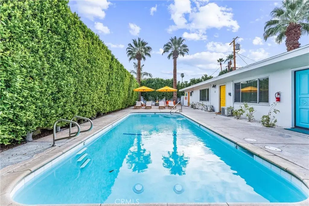 This exclusive 1-bedroom apartment, tucked within a quiet triplex, offers unmatched privacy and tranquility in the heart of Palm Springs. Enjoy breathtaking mountain views, a sparkling pool, and a serene outdoor patio perfect for al fresco dining or soaking up the desert sun. Inside, you'll find a spacious living area, a fully equipped kitchen, and a peaceful bedroom that overlooks the pool and mountainsideal for rest and relaxation.Whether you're exploring vibrant nightlife or simply unwinding in comfort, this hidden gem offers the perfect blend of luxury, convenience, and desert charm.