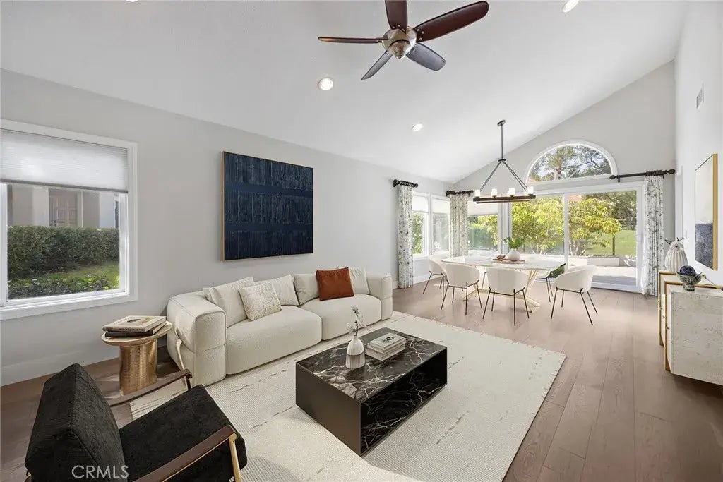 Nestled into the highly desired gated community of Turtle Rock Pointe North boasts this gorgeous updated residence offering the perfect blend of privacy, comfort, and style. Step inside to stunning matte-finish wood flooring that flows through expansive open living areas. The gourmet quartz kitchen features a large center island, generous counter space, premium built-in appliances, and a convenient wine fridge, perfect for entertaining or quiet evenings at home. A bright and inviting casual dining nook overlooks the lush common areas, creating a seamless indoor-outdoor feel. The spacious great room is warmed by a cozy fireplace and is open to the kitchen amenities, with easy access to outdoor enjoyment. All three bedrooms are generously sized with soaring ceilings and custom lighting throughout. The primary suite is a true retreat, flooded with natural light from multiple plantation-shuttered windows and featuring a spacious sitting area. Enjoy a spa-like en-suite with dual vanities, a sumptuous soaking tub, separate shower, and an expertly organized walk-in closet. The sun-drenched wraparound patio with vibrant planters provides the ideal space for morning coffee or evening gatherings. Residents enjoy access to outstanding HOA amenities, including a sparkling pool and spa just a short stroll away. It's prime location offers proximity to distinguished educational facilities such as Concordia, UCI, Uni High, Vista Verde, and Bonita Canyon Elementary and is also conveniently located near Strawberry Farms Golf Course, shopping, restaurants, and easy freeway access. This is a r