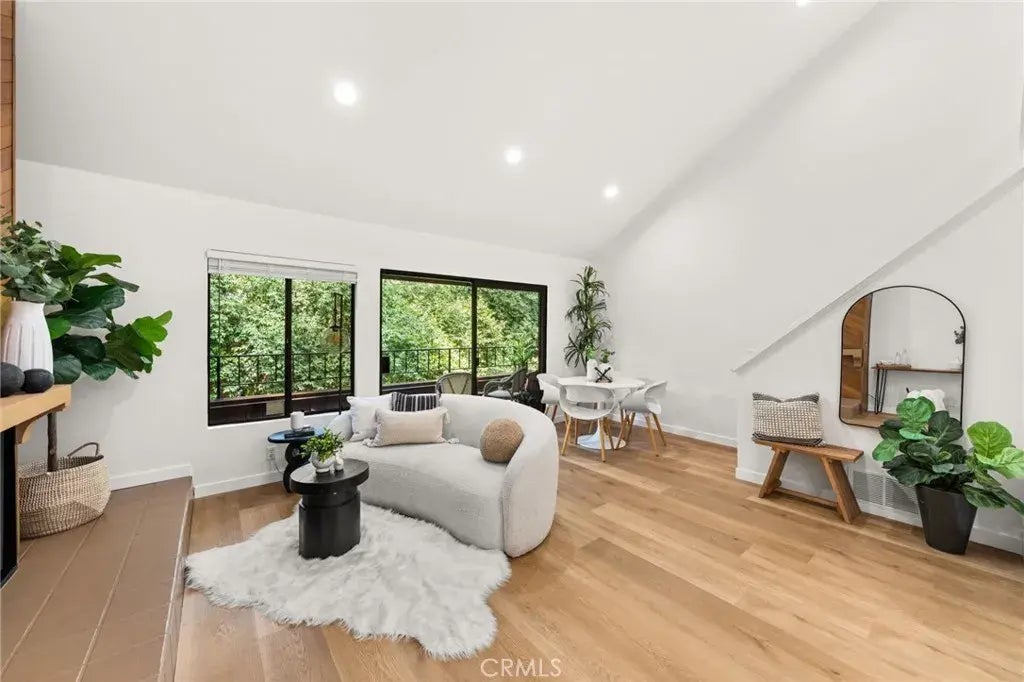 Beautiful 2 bedroom condo located in the serene community of Quail Ridge in Fullerton, complete with streams, waterfalls and nature paths all in a secluded wooded environment, offering a sense of tranquility and a true connection to nature. This condo has been completely remodeled and is ready for its new owner. The remodeled kitchen features white cabinets accented with contemporary black hardware, gorgeous quartz countertops, new stainless steel sink with fitted cutting board, drying rack and strainer and is complimented with a modern black faucet and new stainless steel appliances. Open and spacious living room and dining area with vaulted ceiling, cozy wood panel fireplace, storage closet under the stairs and a slider leading to a private balcony with tranquil view of trees and flowing stream. The balcony offers a spacious outdoor storage room. Other features include new recessed lighting, new paint and baseboards and newly installed light natural wood luxury vinyl flooring throughout (including stairs), new hardware on interior doors and indoor stackable laundry closet. Comfortable Master Bedroom, with dual closets, new modern black ceiling fan, cozy little nook area with window that looks out to the community and an en-suite beautifully remodeled bathroom, complete with new dual vanity, quartz countertop, light fixture, mirror, sinks, toilet and plumbing hardware. Secondary Bedroom at top of stairs is large open loft concept with an alcove area perfect for an office and features a closet, attractive built-in shelves and recessed lighting. Condo includes a dedicated co