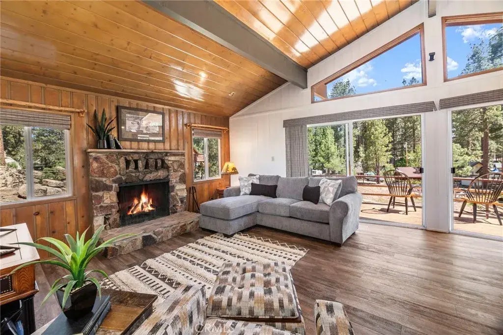 Charming Big Bear Cabin Retreat Minutes from the Lake, Village & Slopes! Welcome to your perfect mountain getaway! Nestled on a private, tree-lined lot, this beautifully updated cabin welcomes you with a long private driveway and ample parking for multiple vehicles. As you approach the home, you're greeted by a spacious front balconyan ideal spot to enjoy your morning coffee while soaking in the tranquil views of towering pines. Step inside to find a warm and inviting living room complete with a cozy fireplaceperfect for those chilly winter nights. The open-concept layout flows seamlessly into the updated kitchen, making it easy to entertain while enjoying the ambiance of the vaulted ceilings and natural light pouring in through two large sliding glass doors. The cabin features two generously sized bedrooms, both with vaulted ceilings and large windows that frame the stunning mountain scenery. The full bathroom has been tastefully updated and includes a stylish vanity, ample storage, and a shower-tub combo to suit all your needs. Outdoors, the fully fenced lot provides a private and secure space to relax or play, with plenty of room for gatherings, pets, or storing your mountain toys. Best of all, this charming retreat is located just a 5-minute walk to the lake, a 5-minute drive to Big Bear Village shops and restaurants, and only 15 minutes from the slopes at Snow Summit. Whether you're looking for a vacation home, investment property, or full-time residence, this mountain gem offers the perfect blend of comfort, location, and rustic charm.