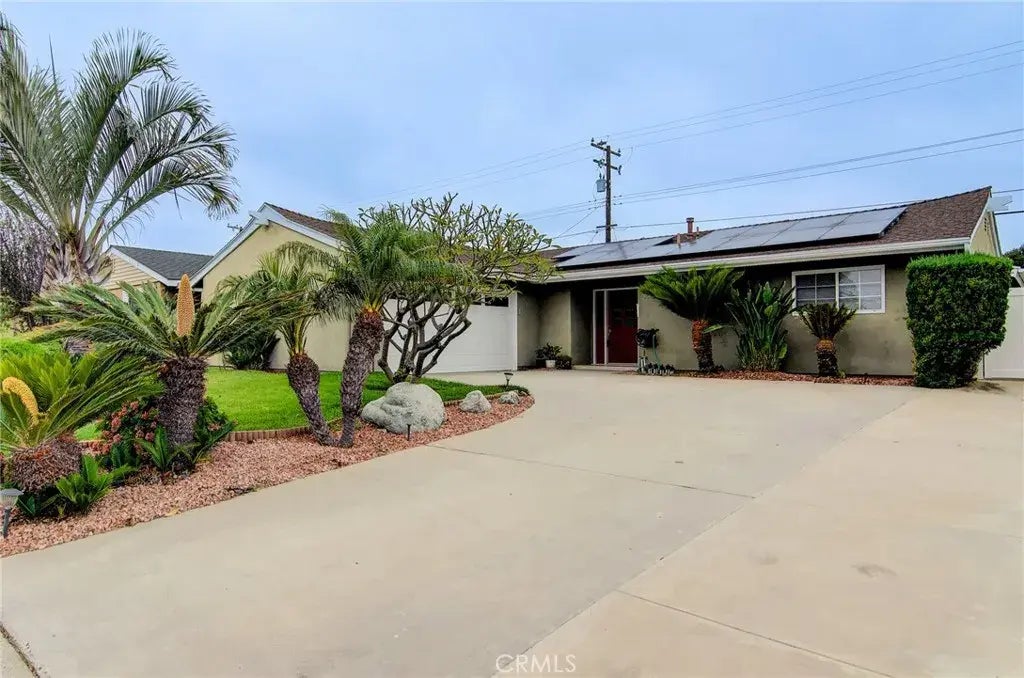 Fantastic purchase opportunity on this gorgeous 3 br 2 ba single story home in the heart of Cypress with paid off solar and in immaculate move-in condition. Great curb appeal, fresh interior two tone painting, neutral LVP flooring throughout the home, completely remodeled chef's kitchen with white cabinets, quartz countertops, subway & decorative custom tile backsplash, stainless steel Viking stove & stainless steel appliances, dual pane windows and sliding glass doors, forced air heating and central air conditioning & paid off water softener. Wonderful single story floor plan with spacious living/great room with accent wall, 2 sets of sliding glass doors leading to the backyard and side yard with infusion of natural light, bright & open kitchen with quartz counter peninsula/ breakfast counter & pendant lights above, dining room with sliding glass doors leading to the side yard, accent wall lights in living room and dining room, huge primary bedroom with walk in closet and sliding glass doors leading to backyard, bedroom with desk/ play area nook. updated primary bathroom with floating vanity and custom tiled shower, updated hallway bath with dual sink vanity & mosaic tiled shower, recessed lights throughout, 2 car attached garage with direct access, beautiful landscape with sprinklers on timer, and a private backyard & outdoor covered patio area for entertaining. Location convenient to popular schools, shopping, restaurants, and freeways. Don't miss out!