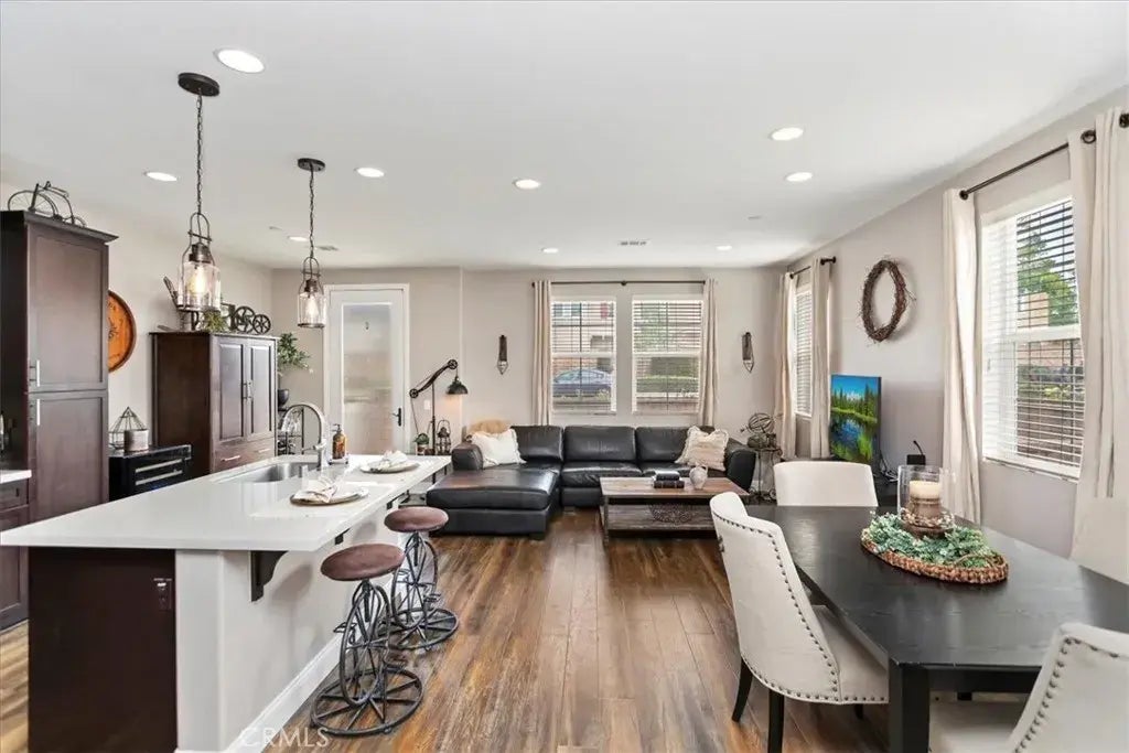 Welcome to Parkside Ontario Gated Community. This upgraded desirable end unit with a location that you will fall in love with. Only one shared wall. Step into the foyer and take a look at the great room with spacious living. The kitchen will call out to all you gourmet cooks, large center island accented with quartz countertop, rich wood cabinetry, ample storage, lots of counter space, upgraded stainless steel appliances, gas cooktop, double ovens, microwave, New dishwasher, refrigerator is included, recessed lighting, adjoining dining room, living room with wooden blinds, drapes, wood like upgraded laminate flooring, high ceilings. Downstairs half bath with pedestal sink & mirror and upgraded tile flooring. Go upstairs to find the loft perfect for den/office/work out room, perfect for relaxing and reading a book, (this room the builder had as an optional 4th bedroom check out the floorplan in supplements, look at the possibility) two large secondary bedrooms with upgraded ceiling fans, upper hall bath with combo tub and shower, vanity and mirror, the Primary bedroom is spacious with a walk in closet, upgraded ceiling fan, and adjoining ensuite bath featuring a relaxing soaking tub, custom designed walk in shower, linen cabinet, dual pullman. Upper inside laundry room with storage shelve, This floorplan has lots of natural lighting. Direct access from your 2 car garage with automatic garage opener. The patio area is perfect for relaxing and soaking up some sunrays, it has artificial turf perfect for low maintenance. Amenities at Parkside Community include a oversized pool a