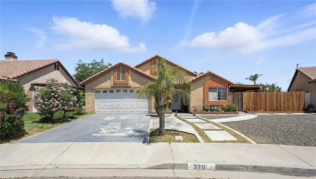 Welcome to this charming 4-bedroom, 2-bathroom single-story home offering 1,107 sq ft of comfortable living space that has high vaulted ceilings throughout the home. Nestled in a quiet neighborhood, this well-maintained property features a bright and functional layout, perfect for both first-time buyers. Enjoy a spacious living room that features high ceilings, cozy fireplace, a dining area, and a clean, open kitchen ready for your personal touch. Primary bedroom features high ceilings, large closet and private attached primary bathroom with a soaking tub. The home includes central A/C, tiled floors, a 2-car attached garage, and an over-sized backyardideal for weekend barbecues or creating your own outdoor oasis. Built in 1988, this home combines classic charm with everyday convenience. Don't miss your opportunity to make it yours!