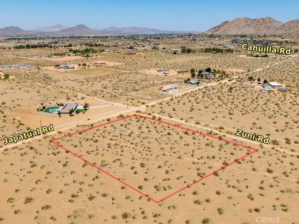 Embrace the great potential of this beautiful 2.42 acres lot (county record shows 3.07ac but parcel map shows 2.42ac) in a fast-growing part of Apple Valley. This corner lot is directly fronting Japatul Road which is one of the major thoroughfares in the area and you can also get access from Zuni Road. Power lines are along Japatul Road with a power pole at the NW corner of this lot. Private well and septic tank are necessary and common in the area. Downtown Apple Valley, Victorville and everything you need is just a short drive away. This lot is in San Bernardino County jurisdiction and zoned for AP/RL (Apple Valley/Rural Living) which allows for single family homes and incidental agriculture uses. This is really an unique opportunity to enjoy a peaceful desert lifestyle with expansive open spaces and breathtaking natural beauty. Do not miss this opportunity to make your dream come true on this blank canvas. Please note that the boundaries represented in the photos are only an estimation.