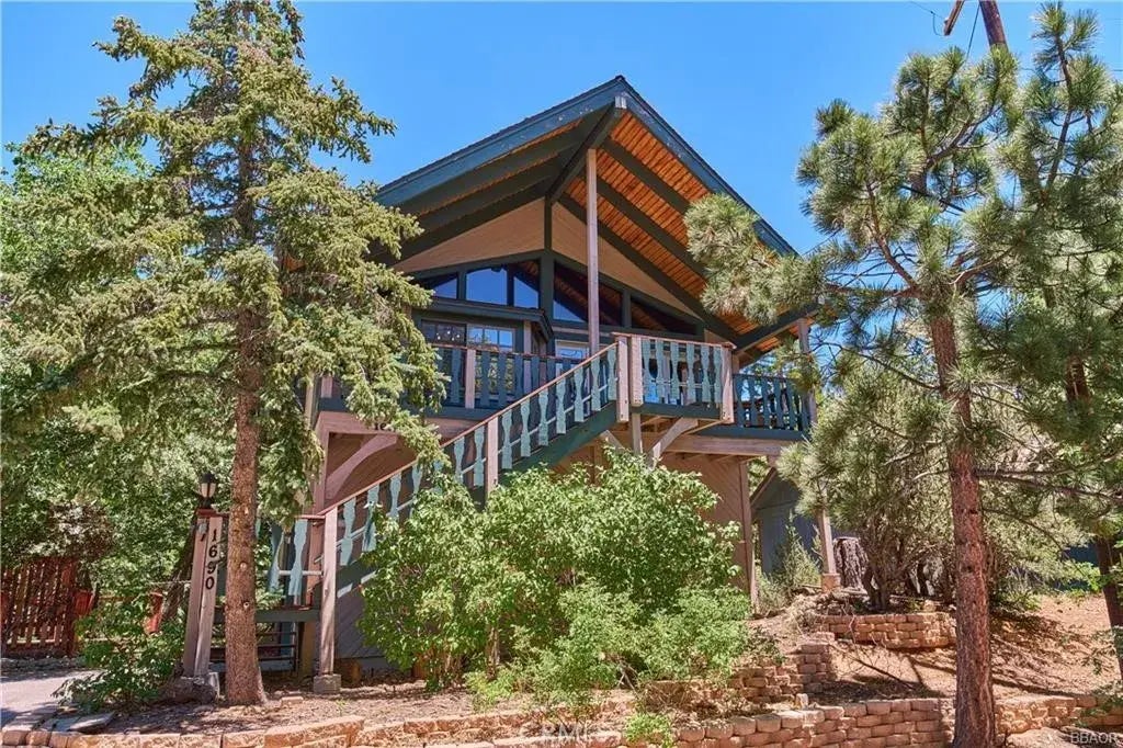 A must-see in Big Bear! Located in Moonridge just minutes to Bear Mountain Ski Resort, Bear Mountain Golf Course, Big Bear Alpine Zoo, national forest trails, restaurants, and shops, and a short drive to Snow Summit Resort and the Village. This recently updated home is ideal for an owner occupant or an investor looking for a fully turn-key vacation rental opportunity. A rare find in Big Bear, the home has central air conditioning to avoid those uncomfortably hot summer days, as well as two large living rooms (one on each level), making it ideal for entertaining. The home has 3 large bedrooms that comfortably sleep 10, 2 full bathrooms, a one car garage that can also be used for additional storage, and a recently remodeled and fully equipped kitchen with stainless steel appliances, marble countertops, and a natural stone backsplash. The kitchen opens to a cathedral ceiling living room with a beautiful stone fireplace and a comfortable dining area. The lower level has a large bedroom, full bathroom, an oversized laundry room, and a living/game room with a wood burning stove and ample activities including a shuffleboard table, foosball, and a movie collection with over 300 DVDs. Enjoy the fresh mountain air, play horseshoes and make smores in the fire pit in the fully enclosed backyard. Each bedroom and living room have an attached balcony/deck to relax and enjoy the serenity of upper Moonridge.