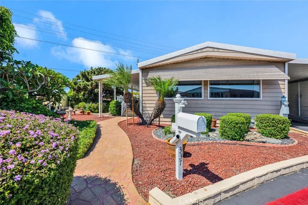 Coastal Living at Its Finest in Rancho Del Rey 55+ Community! Welcome to your beautiful Southern California coastal retreat! Nestled in the GUARD GATED Rancho Del Rey 55+ community, this stunning home offers the perfect blend of privacy, safety, serenityand unbeatable location. Just a 5-minute drive to HUNTINGTON HARBOR and fabulous SUNSET BEACH, this is coastal living without compromise. You will immediately notice the HEAVENLY OCEAN BREEZE that cools and relaxes you!! Situated on one of the LARGEST CORNER LOTS in the park (@2,100 sq ft), this home features lush gardens, vibrant flowers, a custom stone seating area, and a massive shaded patio (~40 yards long)perfect for outdoor entertaining or relaxing in the ocean breeze. Inside, enjoy a light, bright open floor plan highlighted by two skylights and a spectacular WALL OF WINDOWS in the dining and living areas. Recent upgrades include a completely REDONE ELECTRICAL SYSTEM, newer water heater, and a 2024 PATIO RENOVATION. Additional features include: *2 spacious bedrooms, each with its own en-suite bathroom *Chefs kitchen with stainless/black appliances, rich wood cabinetry, and a convenient pass-through to the family room *Pocket door between the TV/family room for added privacy *Laminate wood flooring throughout, with cozy carpet in bedrooms *Large driveway fits 3 CARS EASILY + Extra large storage shed *Guest parking nearby The community offers a VIBRANT LIFESTYLE with 2 pools, 2 spas, saunas, clubhouse, billiards rooms, card rooms, putting green, and year-round events like weekly bingo! Low space rent of just $2,150/mont