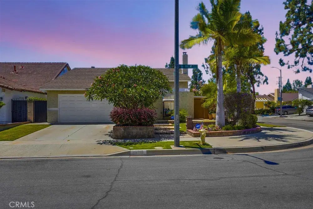 SINGLE-STORY CORNER LOT ON A QUIET CUL-DE-SAC! This beautifully updated home sits in a private and peaceful location and has been thoughtfully remodeled throughout. Completely renovated in 2017, the property features stunning laminate flooring in excellent condition, freshly painted interior walls, and scraped/textured ceilings. The spacious living room boasts soaring vaulted ceilings, large windows that fill the space with natural light, and a beautifully remodeled fireplace with custom Stackstone finish. The updated kitchen offers custom shaker-style cabinetry, two lazy Susans, roll outs, plenty of storage space, and a large peninsula with bar seatingperfect for entertaining. Stainless steel appliances are included: gas range, microwave, dishwasher, refrigerator, washer & dryer. Adjacent to the kitchen, the spacious dining area opens to the backyard for easy indoor-outdoor living, with automatic roller shades on the slider. The expansive primary suite includes a fully remodeled bathroom with a modern walk-in shower, upgraded vanity, and ceramic tile flooring. Two additional generously sized bedrooms feature ceiling fans and custom window coverings. The backyard is an entertainers dream with a covered patio (complete with skylight), extended side-yard awning, concrete hardscape, artificial turf, and a raised garden bed. Enjoy fruit trees including Fig, 2 Guava, Sweet Lemon, and Orangeperfect for gardening or relaxing in your own private oasis. Additional upgrades include a 2017 HVAC system and has a newer hot water heater. The attached two-car garage features epoxy floorin