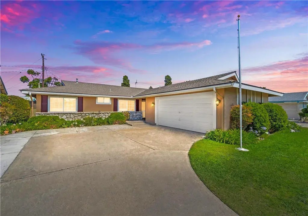 Nestled in the heart of West Garden Groves coveted Garden Park neighborhood, just moments from Seal Beach, sits a beautifully remodeled 4 bedroom, 2 bathroom home. This remodeled home, boasts just under 1,500 square feet of living space and seamlessly blends modern upgrades with timeless charm, offering the perfect backdrop for both everyday living and effortless entertaining. The Garden Park plan 7 is a favorite floorplan amongst the neighbors because of its natural open concept flow. Located on a quiet interior street around the corner from Edgar Park, this home has been completely renovated. A freshly landscaped front yard with lush greenery, and a white vinyl fence with gate welcomes you to this turn-key gem. The reinforced driveway offers ample parking, including space for an RV. Once inside to discover a sunlit living space adorned with sleek laminate and tile flooring, smooth ceilings, and recessed lighting. Dual-pane white vinyl windows flood the home with natural light, enhancing the warm and inviting ambiance. The kitchen features granite countertops and stainless steel appliances including a double oven. Perfect for hosting, the kitchen flows seamlessly into the dining and living areas. Enjoy peace of mind with paid-for solar panels, a newer HVAC system, whole-house fan, 200-amp electrical panel, and a full copper plumbing repipe. Automatic sprinklers keep the front and backyards vibrant and low-maintenance. Retreat to the primary suite, complete with a fully remodeled en-suite bathroom showcasing modern tilework, a walk-in shower, and ample storage. Three additi