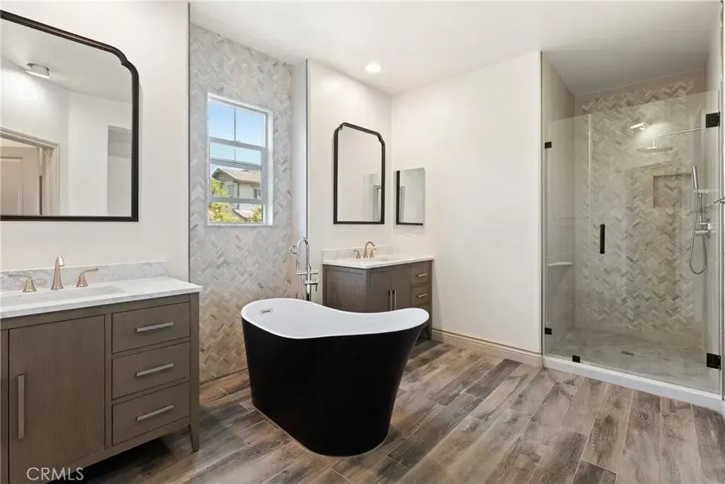 This home is in Yorba Linda * Beautiful Plan 4 Covington homes end unit built in 2016 and remodeled in 2025, with 3 up plus loft and mainfloor bdrm and full bath down. GORGEOUS kitchen with all the extras is wide open to great room with fireplace. This home has been meticulously amd thoughtfully upgraded and remodeled. Primary suite upstairs is generously sized and the bath is spa like with brand new stand alone tub, brand new separate shower and brand bew vanities and tile flooring. 2 more bedrooms upstairs plus convenient loft is a 2nd family room area or maybe an office? Fresh paint gives the interior a beauitlful, airy, newer feel, and gorgeous designer-grade laminate throughout for easy care is a modernizing touch. Mainfloor bedroom is good sized adjacent from kitchen and mainfloor bath is new and beautilful with vanity, new flooring and new shower with barn door style rolling door. Interior laundry room is upstairs for added convenience. Great outside perimeter location on west side of tract with parking and 2 car garage with new epoxy coated floor. Small patio off living room. Large grass/greenbelt is in middle of complex and community pool, spa and clubhouse are in center of complex at entrance. Complex is located across from Nixon Presidential Library, a short distance to shops, restaurants, post office and Yorba Linda Town Center with movie theater and grocery store.