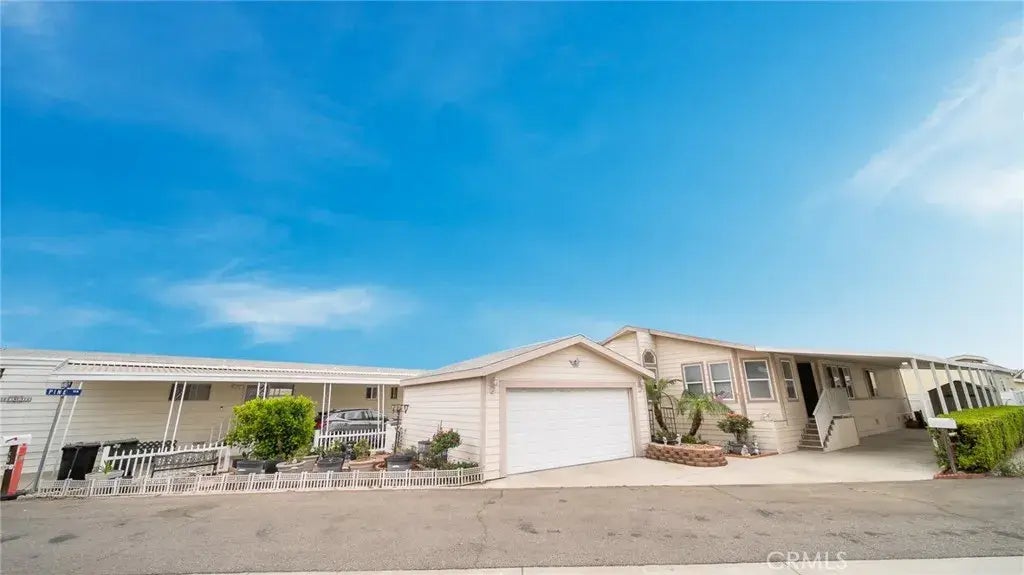 Price Reduction! This residence boasts an impressive 1500 square feet of modern living space. Offering a spacious back patio, With ample parking accommodating up to four vehicles, including a convenient two-car garage. Inside the home has been and freshly painted and There is new laminate flooring Throughout the home and the kitchen is well appointed for entertaining! The open floor plan is ideal for families, with the primary suite located at the rear for added privacy. The large family room off the kitchen is perfect for entertaining, while the front living room is perfect for family gatherings!. The master bedroom is located at the back of the home and has its own bathroom with separate tub and shower. The two ample sized guest bedrooms and a full guest bathroom add to the Charm of this home. Located in the desirable Rancho La Paz mobile home park, this all-ages community offers fantastic amenities, including a beautiful community center, game room, ballroom, and a sparkling pool and spa. Pet owners will appreciate the dog-friendly environment with convenient dog stations throughout the park. Dont miss your chance to make this stunning home your own! Monthly rent space is $2317.00 The home is to be sold as is. The Sheds located in the carport will be removed