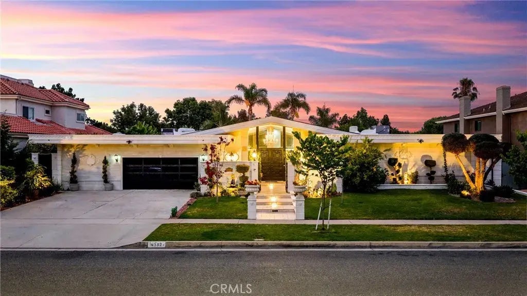 Welcome to the Island of Lakewood a rare, resort-style sanctuary tucked along the fairways of Lakewood Country Club. This beautifully updated estate offers approximately 4,000 square feet of combined living space, including a spacious single-level main home and a detached poolside studio with its own full bathideal for guests, a home office, or creative retreat. Set on a lush, private lot with panoramic golf course views, the property features a sparkling pool, spa, and exquisitely landscaped grounds. Your own backyard orchard awaits with mature apple, orange, passion fruit, avocado, and banana trees, plus fragrant herbs for cooking and entertaining. Inside, timeless elegance meets modern comfort with rich wainscoting, crown molding, designer fixtures, and gorgeous chandeliers throughout. The open-concept kitchen connects seamlessly to a generous family room, perfect for everyday living and hosting. Entertain in style with a custom built-in bar, ideal for game nights, celebrations, or unwinding after a long day. The luxurious primary suite offers a true indoor-outdoor retreat, with direct access to the spa and gardens from your private patio. All bedrooms are well-proportioned, and every bathroom has been thoughtfully upgraded. Additional highlights include a fully finished garage currently used as a private gym and workshop, solar panels for energy efficiency, and countless custom touches throughout. This is more than a homeits a lifestyle. A peaceful, one-of-a-kind estate in one of Lakewoods most sought-after neighborhoods, where every day feels like a getaway.
