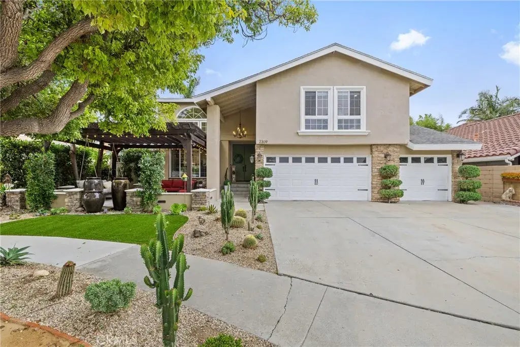Welcome to your dream home! This beautiful remodeled home offers a combination of charm, functionality, and style. Nestled in a quiet cul-de-sac in the sought after area of South Coast Metro in Santa Ana. From the moment you arrive, youre greeted by stunning curb appeal complete with manicured desert landscaping, elegant stonework, and a cozy patio area with relaxing water fountains. Step inside to a bright and spacious main living area, where soaring ceilings and abundant natural light create an open, airy atmosphere. A striking floor-to-ceiling stacked stone fireplace anchors the room, complemented by an oversized chandelier and warm wood accents that elevate the space. The open layout flows effortlessly into the dining area and kitchen. Just off the main living area, you'll find a main-level bedroom and full bathroom, ideal for guests. The kitchen is a chefs dream, with shaker cabinetry, quartz countertops, stainless steel appliances and a window overlooking the backyard poolletting in natural light and offering a serene. The family room provides extra space for relaxation & entertainment. The custom shelving and bar area enhance this space, making it perfect for hosting guests or enjoying family time. Adjacent to the family room is a guest bathroom, beautifully remodeled with a convenient walk-in shower. As you make your way up to the second level, you will find the generously sized primary bedroom with high vaulted ceilings, an abundance of natural light, his and hers closets with tall mirror doors, a cozy sitting area-perfect for reading or relaxing, and an ensuite b
