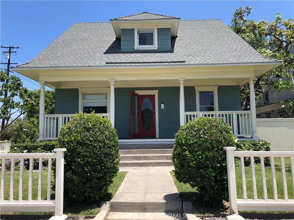 This is for a 1906 Craftsman 4 Bed 2 Bath corner lot home, walking distance to Chapman University. Outside you have a full porch facing N Shaffer St with a nice yard that wraps around to E Sycamore. You have a backyard with cement patio and newly built back porch with a yard. There is a garage facing E Sycamore with a back door for access. The floor plan includes nearly 9-foot ceilings throughout the downstairs, natural wood moldings, a formal dining room, a large kitchen with adjoining breakfast nook, and a separate indoor laundry room with storage cabinets. There are 2 bedrooms downstairs, one having an ensuite bathroom. In the kitchen you have upgrades such as a dishwasher, quartz countertops and white shaker cabinets with new LED lighting. Upstairs are the other 2 bedrooms with a 3/4 bathroom down the hallway. Each room has closets for storage, including a large storage area on the second level at the top of the stairs.