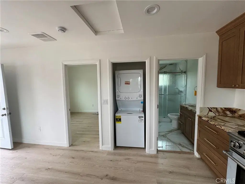 Garage converted ADU new built with one bedroom and bathroom and kitchen, laundry area inside. Private entry