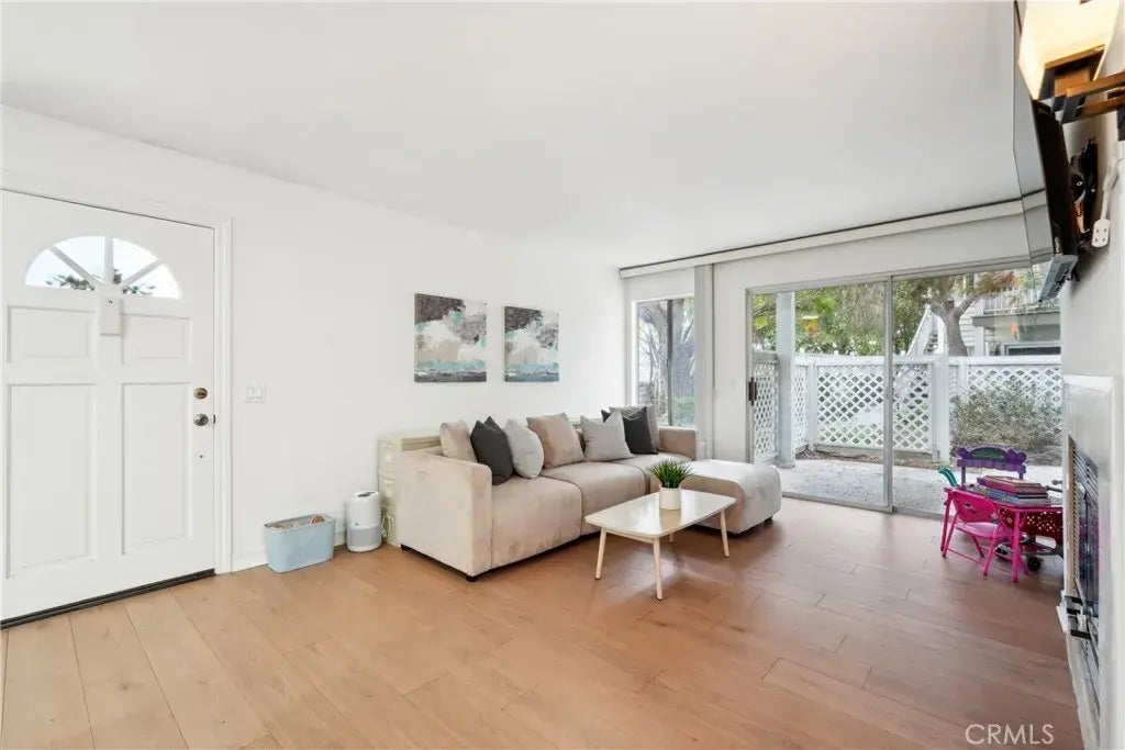FHA Approved! Welcome to this charming lower-level 2-bedroom, 2-bathroom condo. Thoughtfully updated and move-in ready, this inviting home offers a light and airy feel with tasteful finishes throughout. Step into a spacious living room featuring beautiful wood-style flooring, a cozy gas fireplace, and large sliding glass doors that open to your private patioperfect for morning coffee or weekend relaxing. The open layout flows effortlessly into the dining area and kitchen, creating a comfortable space for everyday living and entertaining. The kitchen boasts white cabinetry, neutral countertops, and stainless steel appliances including a dishwasher and built-in microwave. Recessed lighting adds a modern touch while a breakfast bar opens to the dining nook, offering both style and convenience. The primary bedroom includes an en-suite bathroom and generous closet space, while the second bedroom is perfect for guests, a home office, or growing families. Both bathrooms are updated with fresh, clean finishes and modern vanities. This unit has also been upgraded with new plumbing, providing peace of mind and added value for years to come. Additional highlights include central air and heat, two covered carport spaces, and access to community amenities. The complex is FHA approved, making financing more accessible for many buyers. Enjoy a well-maintained community with lush landscaping, all conveniently located near shopping, dining, parks, and easy freeway access. Whether you're a first-time buyer, downsizing, or seeking a smart investment, this condo checks all the boxes!