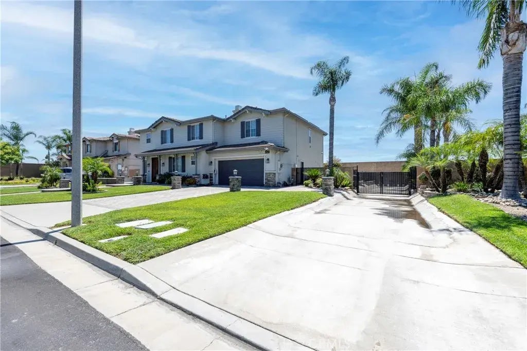 Located in the sought-after Etiwanda area, this turnkey two-story home offers six bedrooms, four and a half bathrooms, and 4,130 sq ft of living space on a 10,009 sq ft cul-de-sac lot. Interior highlights include high ceilings, crown molding, mixed flooring (carpet, laminate, tile, and wood), a laundry room with a wash basin, and a variety of room types such as a loft, Jack & Jill bedrooms, walk-in closets, and separate family spaces. The upstairs master suite boasts dual closets, a large retreat, and a spacious ensuite bath, while the downstairs bedroom/office includes a full bath. The gourmet kitchen features granite countertops, an island, double ovens, and an open layout that connects to the dining area. The expansive family room includes a fireplace and a built-in entertainment center, complemented by formal living and dining rooms. The home features a three-car tandem garage with direct access, driveway parking, public sewer and water, central air and heating (including forced air, a fireplace, and a solar-supported system), and a leased solar-powered system. The north-facing lot spans approximately 0.23 acres and includes a landscaped front yard, fenced backyard, RV and/or boat parking access, a covered patio with BBQ island and fire pit, and a private backyard with a heated in-ground pool and spa. This home is ideal for those seeking a blend of luxury, comfort, and convenience in a prime location. Enjoy mountain and neighborhood views, along with nearby amenities such as biking trails, foothills, sidewalks, and street lighting. The property is located within the Eti