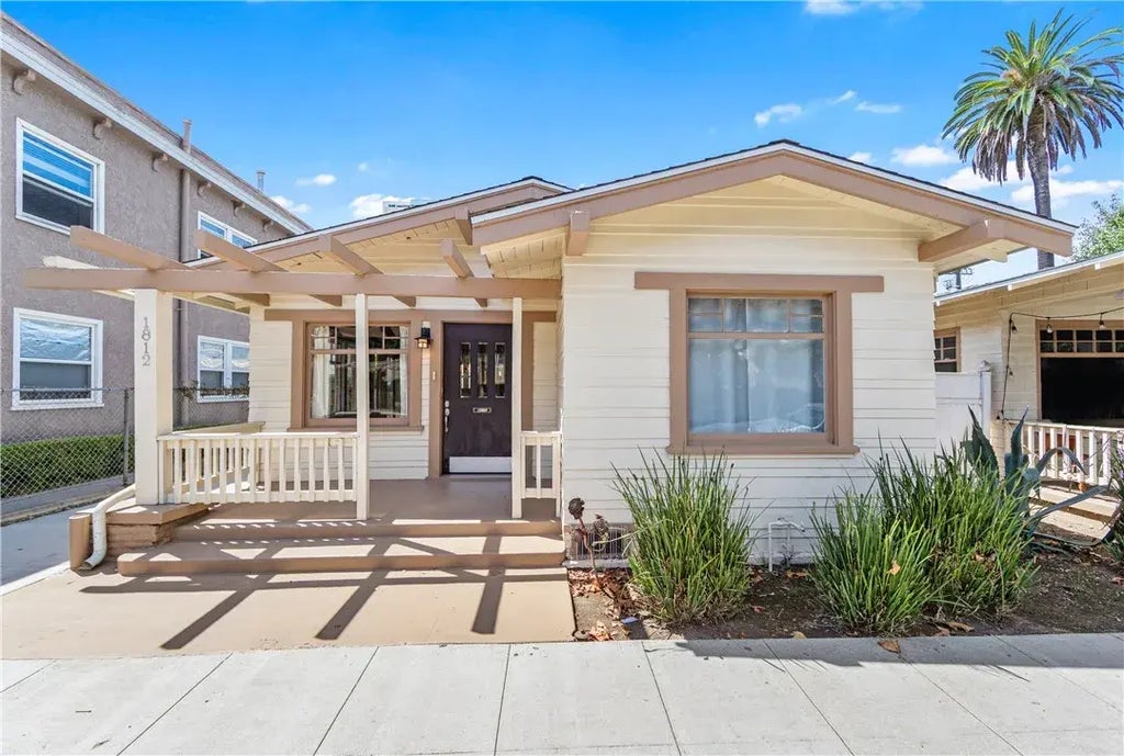 Just a block from the sand and park, this detached bungalow offers a rare blend of charm and updates. The home includes two comfortable bedrooms, with the front room featuring a bonus retreat that works well as an office, reading nook, or extra storage. The kitchen is designed with granite counters and comes equipped with a gas range, refrigerator, dishwasher, and built-in microwave. The bathroom has been modernized with detailed tile work, wainscoting, a whirlpool tub, and a vessel sink. A separate laundry room with full-size washer and dryer adds convenience. Enjoy the inviting front porch and a gated patio that provides private outdoor space, while also having access to a shared backyard. Parking includes one space in the shared driveway. A unique find in an excellent beachside location.