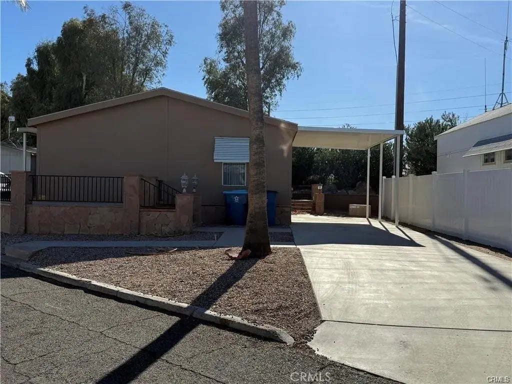 Welcome Home to your beautiful 3-bedroom, 2-bath home. Light and Bright floor plan. This home features 1066 sq. ft. Of living space. The Palms at Verde Shores is a 55+ community that is water and desert close. This community includes a private community beach, multiple fishing ponds, bocce ball, horseshoe pit, a dock & 2 private boat launch ramps. Low park fees which also include tree maintenance and water utilities. This home is conveniently located steps from Jack Smith Marina Park and launch ramp. This gorgeous home has many upgrades which include flagstone upgrades on the exterior skirting, and a fenced yard. This home features recently-installed flooring throughout, fresh paint, baseboards and low-flow toilets. Your cozy kitchen opens to the family room for plenty of room for entertaining. Enjoy in-unit W/D, central AC, newer water heater, 70-foot carport, & concrete driveway with plenty of room to park and store your river or desert toys! For a fee, you can use the community storage facility to store your boat and RV. This cozy residence features a tranquil atmosphere with easy access to water activities and other recreational opportunities. Perfect for those seeking a blend of relaxation and outdoor adventures. Hurry this home will not last!!!