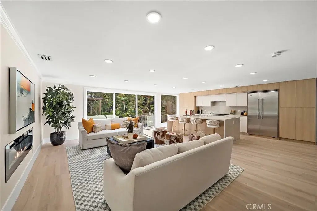 Better Than New! This breathtaking 5BR/4BA luxury home has been fully remodeled with COMPLETE CITY-APPROVED PERMITS. No HOA & Low Taxes. This spacious, fully upgraded home offers the feel of new construction with none of the wait. Features 1 bedroom and 1 full bath downstairs plus 4 bedrooms and 3 baths upstairs including two full master suites ideal for multigenerational living or growing families. The main floor bedroom includes a private bath, cozy fireplace, and sliding door with direct access to the backyard perfect for guests or a home office. The expansive great room opens to a designer chefs kitchen with a Taj Mahal quartzite waterfall island, Viking appliances, custom cabinetry, and a new water softener. Sliding doors lead to a beautifully landscaped, generously sized backyard with mature trees, a large patio, custom gazebo, nice yard, and nice side yard ideal for pets, gardening, or entertaining. Theres also plenty of room to add a pool and create your dream outdoor space. No detail was overlooked: new lighting and chandeliers, recessed lights with night mode, smart switches, dual-pane windows, fresh interior/exterior paint, new laminate wood floors, and mostly new plumbing and electrical. All bathrooms feature walk-in glass showers, freestanding soaking tubs, smart luxury toilets, LED mirrors, dual vanities, and floor-to-ceiling porcelain tile. Also includes a large indoor laundry room with new washer & dryer, and a finished 3-car garage with epoxy floors. Walk to parks, Laguna Hills Plaza, Target, and more plus less than 9 miles to world-famous Laguna Beach. T