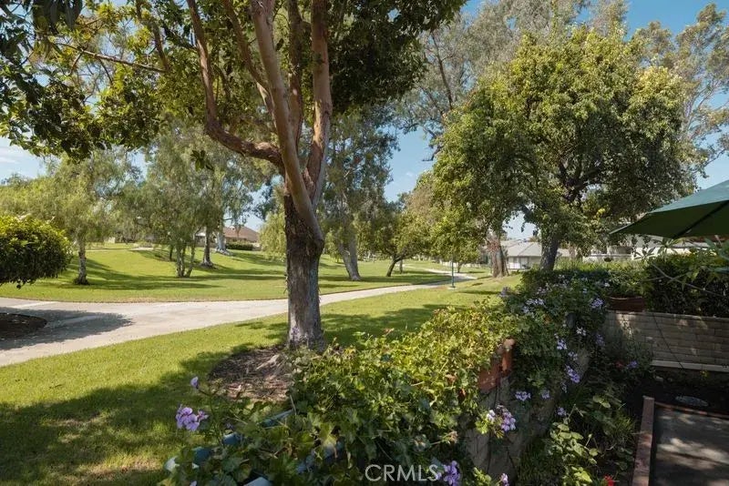 Tucked away as the sole available home on the desirable greenbelt, this charming residence in The Terraces offers a unique opportunity for tranquil living. Step inside to a home that feels brand new, with a freshly painted interior, new baseboards, and no popcorn ceilings to be found. Natural light streams in through updated Milgard dual-pane windows, which come with a transferable warranty for peace of mind. The entire home features beautiful new waterproof laminate flooring, creating a seamless and stylish flow from room to room. The kitchen and bathrooms have been completely transformed with elegant new quartz countertops, offering a sleek and modern feel. In the primary bath, you'll find a brand-new tiled shower, while both bathrooms feature newer toilets for a crisp, clean look. Comfort is key in this home. The newer HVAC system ensures year-round comfort, and the bedrooms are outfitted with stylish plantation shutters with valances. The primary bedroom is a true retreat with a large walk-in closet, a new ceiling fan, and a privacy shade. The kitchen boasts wooden blinds and recessed lighting, which extends to the primary vanity area, adding a sophisticated touch. Practicality meets convenience as the refrigerator, washer, and dryer are all included in the sale. The secondary bedroom has mirrored wardrobe doors, and the garage offers a generous amount of storage space. Potential to add a loft for more space as many units in tract have done. This isn't just a house; it's a meticulously cared-for home waiting for its next owner. With its prime location and thoughtful upg