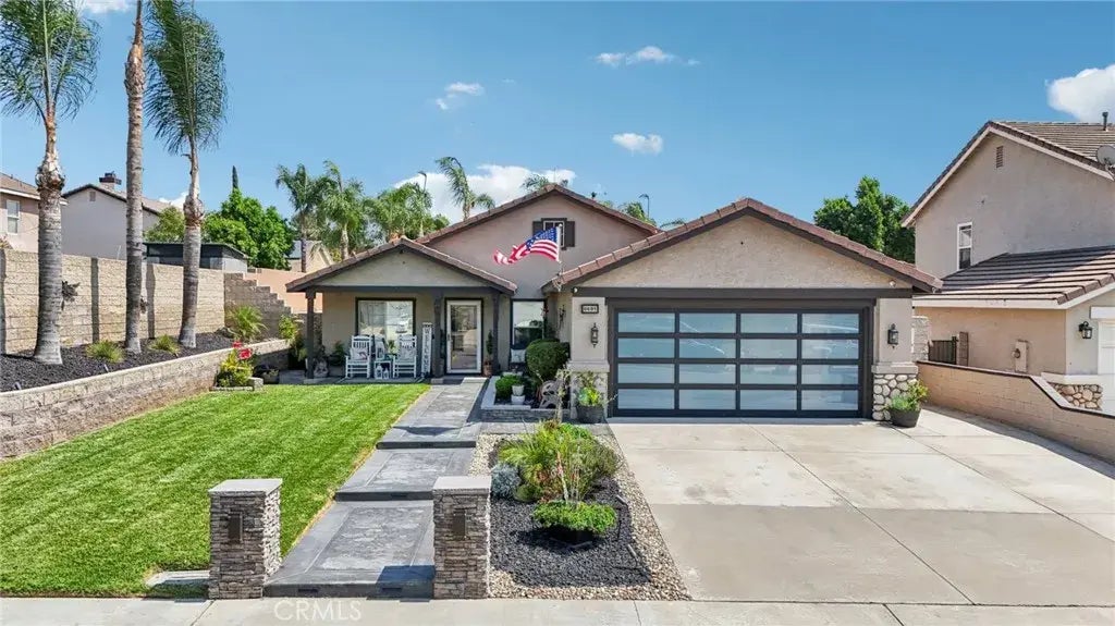 Welcome to 6691 Lindbergh Avenue, where exceptional curb appeal greets you at this stunning single-story home. Featuring four bedrooms and two bathrooms, this residence offers a spacious living room that seamlessly connects to the kitchen and family room. The gourmet kitchen is appointed with granite countertops, rich cabinetry, a large island, a custom decorative glass pantry door, stainless steel appliances, and a wine refrigerator. The adjacent family room is perfect for movie nights, showcasing a custom-built entertainment center and a cozy electric fireplace. The master suite includes a newly upgraded walk-in closet with crisp white crown molding, drawers, and shelves. The master bathroom boasts beautiful earth-tone granite countertops and a tiled stone walk-in shower. Three additional spacious bedrooms provide comfort, while the fourth bedroom has been transformed into a luxurious dressing room with exquisite cabinetry, crown molding, and decorative lightinga true dream closet. The garage features epoxy flooring, overhead storage, modern cabinets, frosted glass panels on the garage door for enhanced natural light, and recessed lighting. Step outside to the expansive backyard, where you'll find mature palm trees, fire-pit, saltwater pool and spa with a relaxing sun shelf and waterfalls. Additional highlights include newer energy-efficient solar panels and roof, a Nest thermostat, plantation shutters, ceiling fans, luxury tile flooring, a smart Ring doorbell, and more. With NO HOA and LOW TAXES, and located in the top-rated Chaffey Unified School District, this home is