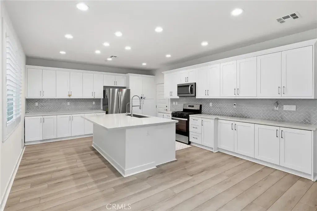 Welcome to 4217 S Heather Privado, a beautifully maintained two-story home located at the end of a quiet cul-de-sac in the desirable Ontario Ranch community. Built in 2024, this 4-bedroom, 3.5-bathroom home spans 2,528 square feet and offers a functional layout. The main floor features a bedroom with an en-suite bath, perfect for guests or multi-generational living. The spacious living room opens to the kitchen and dining area. The kitchen showcases white cabinetry, stainless steel appliances, and subway tile backsplash. The backyard features a low-maintenance paver patio, ideal for outdoor dining or relaxing. Upstairs, a large loft provides flexible space for a second living area, home office, or playroom. The primary suite includes a walk-in closet, dual vanity, soaking tub, and walk-in shower. Additional highlights includes luxury vinyl plank flooring, custom shutters, recessed lighting, and a direct-access two-car garage. Conveniently located near Costco, 99 Ranch Market, and a variety of shopping and dining options, with easy access to the 15 and 60 freeways. Located within the Chaffey Joint Union High School District.