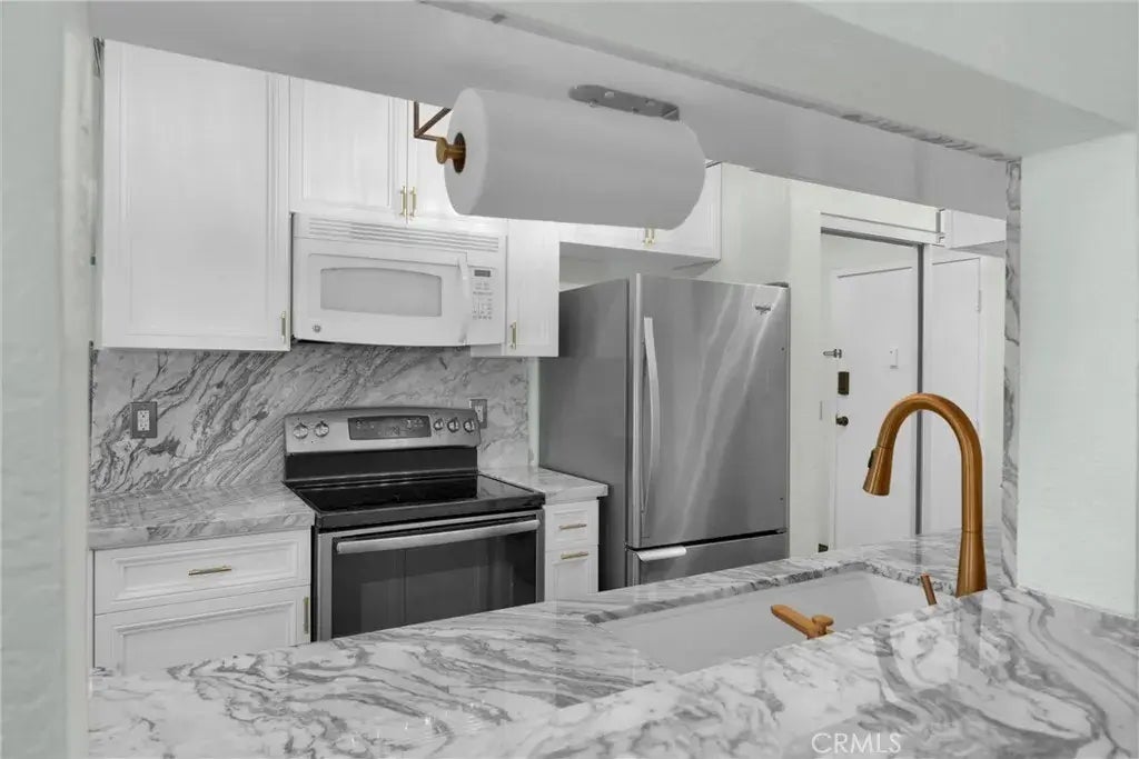Perched on the top floor, this single-story 2-bedroom, 2-bath corner residence equipped with 2 private balconies and a private washer and dryer inside the home offers an unmatched level of convenience and exclusivity. Flooded with natural east-facing light, the home features elegant chandelier lighting, expansive windows, and two private balconies overlooking lush greenery for a tranquil Hollywood retreat. Over $50,000 in thoughtfully curated upgrades elevate the space, including an enlarged chefs kitchen with stainless steel appliances, custom italian marble countertops and backsplash, and sleek modern finishes. Both bathrooms have been newly renovated to showcase luxurious onyx and Italian marble countertops, delivering a spa-inspired experience. Year-round comfort is ensured with a brand-new AC and heating system, while ample custom storage enhances everyday functionality. The residence includes three total parking spaces, featuring secure gated tandem parking for two plus an additional dedicated spot. Located moments from the Hollywood Bowl, theaters, dining, shopping, and major freeways, this sophisticated home offers the perfect balance of peaceful living and iconic Hollywood energy.
