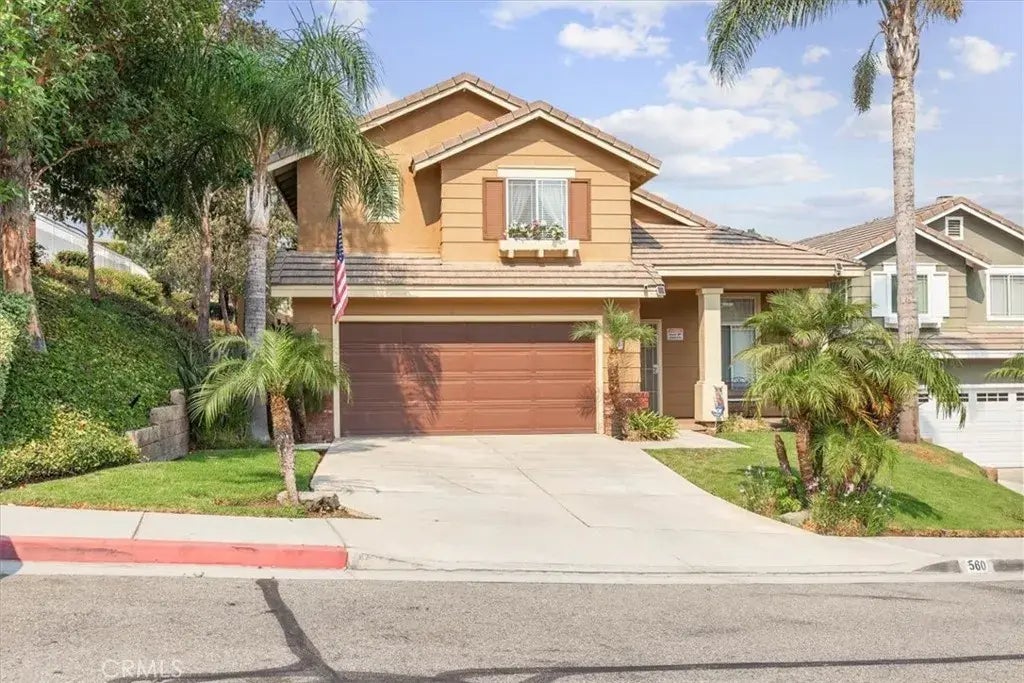 Welcome to 560 Shenandoah Road, a beautiful traditional two-story home located in Corona Hills. Situated in a picturesque neighborhood known for its tranquility, convenience, and exceptional location. This home features 3 bedrooms, 2.5 bathrooms, a two-car garage with built-in storage, a stylish outdoor living space and central air and heating. Upon entering you are greeted by a bright and airy living room with hardwood flooring, cathedral ceilings, and picture windows that frame a great view of the front lawn and backyard. The adjoining family room has a wood-burning fireplace, large picture windows with a view of the patio, access to a powder room, and an open floor plan that connects to the kitchen. The kitchen features recessed lighting, tile flooring, cream double paneled cabinets, granite counter tops, glass tile back splash, and stainless-steel appliances. Off the kitchen is a sliding door that leads to the outdoor living space with a covered patio, ceiling fans, and a large grass area. The patio furniture and an outdoor entertainment system are included. Off the living room are stairs leading to the second level with painted wood railings that coordinate with the baseboard trim throughout the living room. The second level presents a master bedroom with an en-suite bathroom, walk-in closet, and vinyl flooring. The two additional bedrooms and guest bathroom are connected by a spacious hallway that also houses both a washer and dryer. The community offers a park for outdoor leisure activities, natural views of surrounding hills, and suburban charm. The easy accessibili