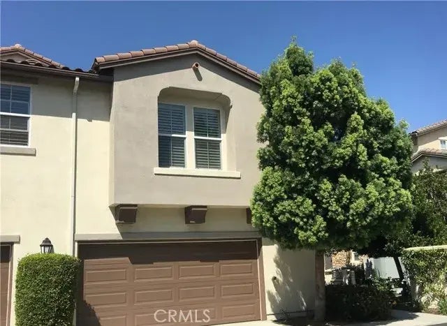 Contemporary living in a spacious 2 bedrooms with 2 full bathrooms condominium above it's own 2 car garage with direct access. The unit has it's own laundry with stackable washer and dryer. It's location on the end of the units and separate pathways provides privacy. All bedrooms upstairs. The unit currently has bamboo hardwood flooring, plantation shutters and crown molding throughout. Fireplace in living room beside a built-in study table. The kitchen has lots of cabinets, stainless steel appliances which includes a 4-burner gas range, microwave, dishwasher and double sinks plus a ceramic tile countertop and backsplash. The dining area exits to a double sliding glass door to the balcony. Bedroom #1 at the back has ceiling fans, it's own private bathroom that features a spacious closet, double sinks with a large vanity mirror, ceramic tile countertop with glass tile backsplash, maple cabinets and soaking tub with ceramic tile. A separate room for the commode for privacy. The Hallway bathroom has a full tub with decorative boarders and maple cabinets. It is located across the second bedroom. The second bedroom has mirrored closet doors. Conveniently located near the associations private park with a playground, private picnic area with tables and benches.