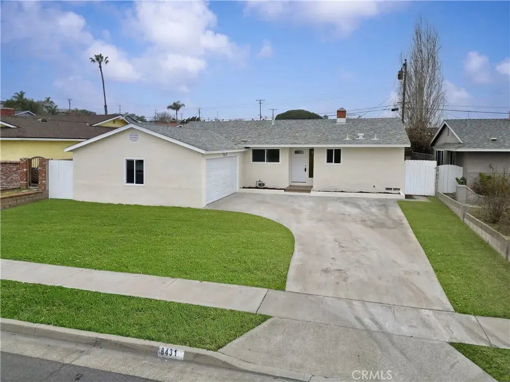 This Beautiful Huntington Beach home has been completely remodeled and is move in ready! The home features an open floor plan with all new windows and natural light. A new kitchen with custom cabinets and quartz counters. There is an oversized living room with a brick fireplace and a separate formal dining room that leads to a large family room with vaulted ceilings. There are four bedrooms with mirrored closet doors, both bathrooms have been remodeled. New paint inside and out and all new laminate flooring, new mini split heating and air unit. A two car attached garage with room in the driveway for multiple other cars and a private back yard. The house is on a small cul-de-sac and close to schools, shopping and the beaches. The grass was added to the photo's.