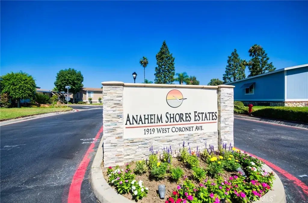 Welcome to this beautiful spacious open floor plan home at the prestigious ANAHEIM SHORES ESTATES.A family-oriented park with lots of green trees Cul-de-sac, and parking island, wider streets and well-kept grounds and clubhouse. The clubhouse has a card/board game room, Billiard room, TV room with seating area, a restaurant style kitchen, BBQs with covered eating area and a multi-purpose recreation room which can be reserved for special events. This 1980 manufactured home sits on a corner lot that leads to the clubhouse. Has 2 bedrooms, 2 bath, Central A/C, and gas heater, stainless steel appliances, kitchen with island counter. Quality wood vinyl flooring all throughout the house and a good size laundry room with utility sink. In-ceiling Bluetooth speakers in living room and kitchen. Tankless water heater, Full height wall mirror at dining area. The master bedroom is equipped with the state-of-the-art innovative shower with complete home spa experience. It provides a seamless combination of shower enclosure, steam shower and hydro massage, whirlpool bathtubs, all within the same cabin. In addition, the shower features 12" Digital TV touch screen, control panel Bluetooth compatibility,5KW steam generator and thermostatically controlled water temperature amongst other features with cutting edge designs matched with the latest technology. This house has newly replaced shingles roofing (Owens Corning) Al throughout and also has a fenced covered front patio with polished slate tiles, carport with epoxy floor and storage (w/ electrical outlet and motion sensor light). It is situ
