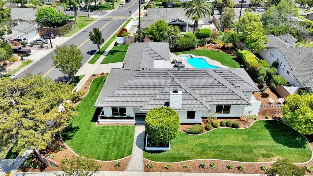 Welcome to your private oasisthis newly renovated pool home, gracefully positioned on an expansive corner lot, blends modern sophistication with relaxed California living. From the moment you enter, an atmosphere of refined elegance unfolds, where light, space, and design harmonize seamlessly. At the heart of the home, a stunning contemporary kitchen invites culinary creativity. Quartz countertops and full-height quartz backsplash set a striking tone, complemented by designer fixtures, sleek floating shelves, and premium stainless steel appliances. The open-concept layout flows effortlessly into the formal dining areaideal for intimate dinners or lively gatherings. The expansive living room is anchored by a show stopping marble fireplace, creating a warm yet upscale focal point for entertaining or unwinding in style. Wide plank white oak luxury vinyl flooring flows throughout, paired with LED recessed lighting, fresh designer paint, and all-new baseboards and casingseach detail curated for a polished, cohesive aesthetic. The generous primary suite is a tranquil retreat, bathed in natural light, and complete with a spa-like ensuite bath. Indulge in a dual vanity with designer finishes, an artfully tiled walk-in shower, and Starphire glassa space where luxury and comfort meet effortlessly. The secondary bedrooms are both generous in size with ample closet space. The hall bath features a contemporary floating vanity, free standing soaking tub, designer fixtures and a walk-in shower. A California room can be utilized as a sunroom, vibrant game room or an indoor-outdoor cabana r