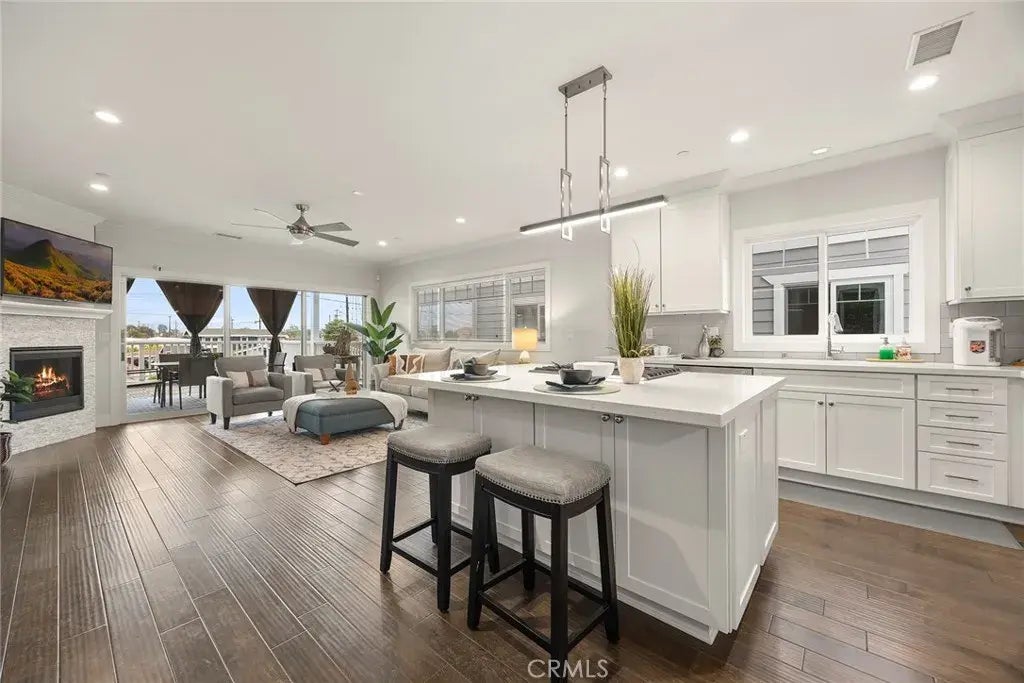 A Contemporary Masterpiece of Design and Refinement! Projecting the distinctive elegance of masterful architecture and superior craftsmanship, this ultra-modern townhome blends sleek design with elevated functionality. Every detail has been thoughtfully curated, offering refined living in a space that is both stately and inviting. The open-concept floor plan showcases soaring ceilings and rich dark walnut hardwood floors, creating a seamless flow from room to room. On the second floor, a luxurious great room anchors the living space with its dramatic stacked marble gas fireplace and an expansive stacking glass door that leads to a covered outdoor deckcomplete with ceiling fan and privacy curtainoffering year-round comfort and indoor-outdoor living. The gourmet kitchen gleams with a quartz center island, breakfast counter, and built-in KitchenAid stainless steel appliancesperfectly appointed for the discerning chef. The adjacent formal dining room is ideal for entertaining or enjoying intimate family dinners. Upstairs, the third floor is dedicated to rest and retreat, featuring three bedrooms, including a stunning primary suite with vaulted ceilings and a spacious en-suite bath. Ceiling fans in all bedrooms, the great room, and the patio enhance comfort throughout the seasons. Solid core doors, Milgard windows, central air and heating, and a Rinnai tankless water heater add to the homes efficiency and livability. Additional highlights include a direct-access, oversized 2-car garage with roll-up doors, an EV charger, and a third garage bay smartly converted into a versatile s