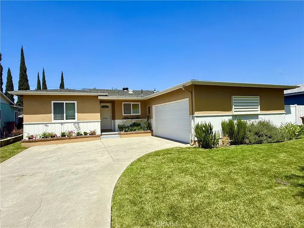 This charming single-story home is located within the highly rated Troy High School boundary. It features three bedrooms and a den with a built-in closet that can serve as a fourth bedroom. There are two updated bathrooms, and the kitchen has granite countertops, recessed lighting, and a skylight. The living/dining area includes a cozy fireplace, recessed lighting, and skylight, creating a bright and inviting space. The home has central A/C and wood flooring. A spacious enclosed patio, equipped with a window A/C unit and ceiling fan/light, provides versatile optionsideal for a home office, entertainment space, exercise room, or play area. The attached two-car garage offers direct access to the home and is equipped with an energy-efficient tankless water heater. The long driveway provides ample parking, and the large backyard includes fruit trees and retractable awnings. Conveniently situated near schools, a park, and shopping, with easy access to the freeways.