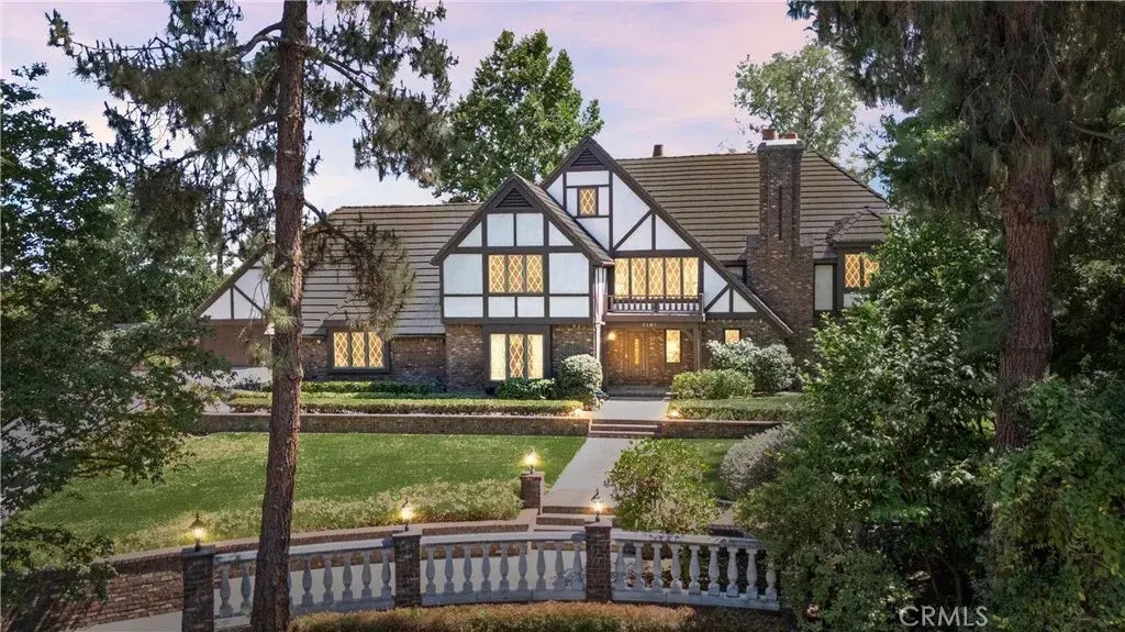 Don't miss this rare opportunity to own this showcase home on a stately 0.75 Acre lot tucked at the end of a tree-lined cul-de-sac, this custom-built Tudor estate is a unique gem set on beautifully landscaped grounds in Sunny HIlls, one of Fullertons most sought-after neighborhoods, next to walking, cycling and horse trails. The gracious entryway with soaring ceiling invites you into the formal living room with a fireplace. Entertain effortlessly with a formal dining room, spacious kitchen, and a comfortable sitting roomalso with a fireplace and built-in bar, for flexible everyday living in an airy open-concept floorplan. Upstairs, the lofted office with built in bookshelves oversees the sitting room below. The primary suite is a serene retreat, featuring a sitting area, walk-in closet, private dressing area, and a jetted tub with separate shower. Two more bright spacious bedrooms are located on either side of a hallway that leads to an unfinished attic space with incredible storage capability, that could be converted to a bonus room for movies, play, art room or whatever your imagination could allow. A lower-level bedroom with ensuite bathroom including an walk-in tub and safety rails, adds convenience and accessible living. Just outside, enjoy lush rose gardens, flowers and fruiting pomegranate trees, a beautifully landscaped backyard with a tranquil koi pond, covered patio, a gazebo and an expansive back lot with endless potential to create, garden, or relax. Enter through the front door, or through the 3 car garage that opens into a hallway next to the laundry room. A s