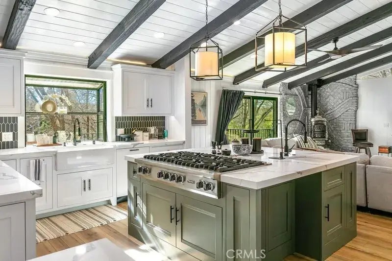 This Mountain Modern Gem is situated in the highly sought-after North Shore Estates, offering convenient level entry and exclusive lake rights. This extensively remodeled property boasts a Chef's kitchen, complete with a Viking 8-burner stove, seamlessly connecting to both the living with a fireplace, and a family rooms for optimal entertaining. Outside is an expansive deck for BBQ and family gatherings to watch sunset. The expansive master suite features a captivating two-sided fireplace, huge walk-in closet, and master bath. Two additional suites, and a charming kids bunk room for family members and guests. There is a well-appointed game room equipped with a pool table for endless entertainment. Relaxation awaits in the outdoor hot tub. A leisurely stroll along the lakeside trail leads to your dock at Winter Harbor Cove, providing easy access to lake activities. This meticulously furnished and turnkey mountain retreat is a must-see for those seeking the epitome of luxury living.