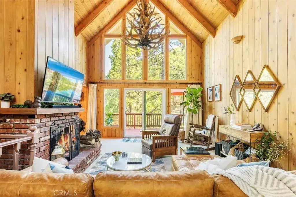 Discover tranquility with this enchanting Thunderbird-style home, nestled away from the crowds yet wonderfully accessible to all that Lake Arrowhead has to offer. Situated in a serene lake-rights neighborhood, this property features a beautifully forested parcel with a calming seasonal stream at the backyard. Conveniently located with only a 2-3 minute stroll to Grass Valley Park, 3-4 minute drive to the prestigious Lake Arrowhead Country Club (LACC) golf course and 10 minutes away from Blue Jay and the Village. For the outdoor enthusiast, National Forest trails are a 10-15 minute drive away as well as the popular trail around private Lake Arrowhead. The living room features soaring vaulted ceilings leading seamlessly to the expansive deck and open plan kitchen with dining area overlooking the forest. Rounding out the main level is the primary bedroom with vaulted ceilings, fantastic light with deck access and full bath making for easy daily living. Additionally, the generous 1/3 acre parcel features a beautiful forest view in addition to providing ample space for enjoyment and development opportunities with a secondary access point located on the opposite side of the parcel via a level access road. Recent upgrades include a new mini split AC in the living room and dual pane windows/sliders throughout for energy efficiency. Downstairs contains a cozy family room, two additional bedrooms, full bath, laundry and secondary deck leading directly to the backyard. Being located on a county snow-plowed and maintained street, easy access year round is assured. The property will be