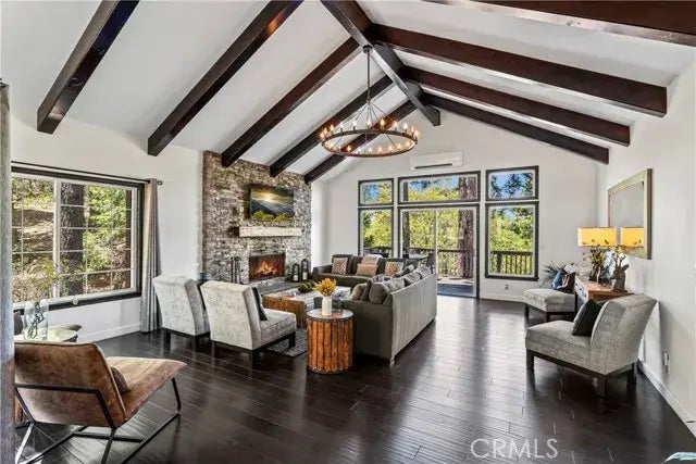 Luxury property appropriately known as Summit Serenity, 279 Fairway Drive is located in the high end Lake Arrowhead Woods neighborhood known as the Summit. Full lake rights to private Lake Arrowhead. Resting within mature evergreen trees on over a half acre of land(.63 acre), this parcel backs National Forest Land. Perfectly positioned to the North offering plenty of natural light and boasting unobstructed forest views from the entire main living area, massive main level entertainers deck and master en suite. This property touches the scenic Pack Trail for a rejuvenating nature hike right out your back yard! Located on a County paved and maintained road, enjoy level access from the driveway and 2 car garage. This uber functional floorplan can comfortably sleep 16 people, and checks off all the boxes: vaulted ceiling living room, designer kitchen w/ center island, Viking Stainless refrigerator and double oven. Primary en suite complete with sauna, romantic fireplace, soaking tub, glass shower with forest view window, dual vanities and private deck attached. A junior primary en suite guest bedroom plus 4 additional guest bedrooms. Lowest level features the ultimate game room complete with a 3rd fireplace, full wet bar, under counter refrigeration units, bar top and attached deck leading down to basketball court next to soothing seasonal stream! Sellers acquired this 4,009 sq ft, 6 Bed/5 bath property in 2016 and immediately started their top to bottom full renovation leaving no detail overlooked. Sellers upgrades include: engineered hardwood flooring and tile throughout the e