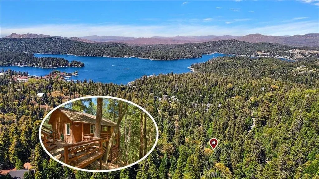 This charming property in Arrowhead Villas offers a serene and private retreat nestled in a forested area. The home features beautiful open-beamed ceilings on the main floor, enhancing its rustic charm and spacious feel. Step out onto the deck and enjoy a delightful peek-a-boo view of the lake, perfect for a moment of relaxation or entertaining guests. The property also includes convenient off-street parking on the deck, ensuring easy access and added convenience. Modern amenities, including brand new energy efficient windows & tankless water heater, air conditioning and a whole house generator, provide comfort and reliability year-round. Ideally located off Hwy 18 and close to Lake Arrowhead Village, this 3 bedroom, 2 bath home provides both tranquility and accessibility, making it a true gem in a picturesque setting.