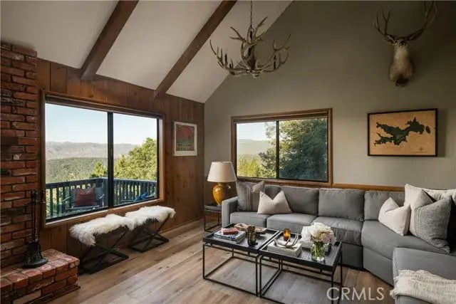 A thoughtfully redesigned chalet with expansive mountain and lake views. Perched at the edge of the national forest, this perfectly appointed mountain retreat embodies rustic charm and modern details. Vaulted beamed ceilings create an open and grand main living space with views of the surrounding boundless nature. A unique layout connects the kitchen, main living space, dining area and deck. The kitchen is appointed with high end custom finishes, bespoke cabinetry and elevated fixtures. Forest green cabinetry and black stone countertops blend the interior and exterior elements. Adjacent is an updated full bath and built-in entry bench. Retreat downstairs to any of the 3 ample sized bedroom, each with large windows and natural light, and a spa like oversized bath. The main bedroom boasts a private deck also with horizon views. Additional features include flat parking for two, split unit air-conditioning and updated finishes throughout. Located nearby to trailhead 2N24 and Tavern Bay Beach Club, the local nature is easy to enjoy. Lake rights complete this perfect package!