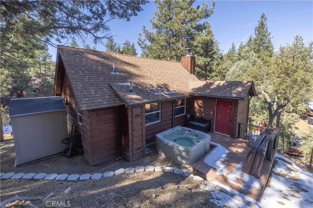 Perched on a picturesque hillside in Big Bear City, this is a delightful 522 sq ft A-frame retreat that promises serenity and stunning vistas. This unique 2-bedroom gem offers privacy and convenience. Step inside and be greeted by a cozy living space where a charming fireplace sets the perfect ambiance for chilly mountain evenings. The downstairs bedroom/bathroom provide ease + accessibility, while the upstairs loft adds rustic charm, perfect for a second bedroom or versatile space. One of the standout features of this property is the private jacuzzi area, where you can unwind in the breathtaking views of the surrounding landscape. Whether you're relaxing after a day of outdoor adventures or enjoying a quiet evening under the stars, this space is the perfect retreat. The additional lot is rare, ensuring that no one will build next door, preserving your privacy. Imagine sipping your morning coffee on the deck, with the fresh mountain air and stunning scenery providing the perfect backdrop to your day. Offering the best of both worlds a peaceful retreat with convenient access to all the amenities and activities that this charming mountain community has to offer. Whether you're an outdoor enthusiast looking for a base camp for your adventures or seeking a cozy home to escape the hustle and bustle, this property is a must-see. Don't miss this opportunity to own a piece of Big Bear's enchanting landscape. Schedule a viewing today and experience the magic yourself! Income estimates at $30,500 annually