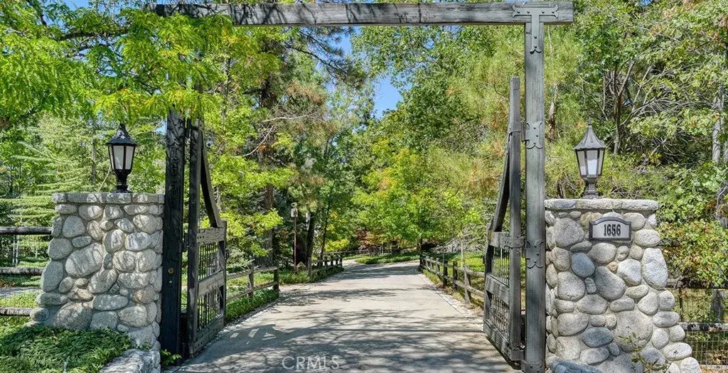 Equestrian Property!! This offering includes Sellers Dock Slip on Lake Arrowhead. It is not often you find an exterior environment that is lush with natural forest beauty combined with fruit trees, vinca and wisteria dotted with magnificent streams and ponds and unexpected spaces to just sit and enjoy. This Trophy Property is the Dream Property you have been waiting for. The stately custom Lodge has an English-Country feel and impeccably built by highly acclaimed Ron Dolman. The 2.8-acre grounds meander around to a six horse stable barn with Tac Room, Feed Room, Birthing Barn, Corral, and Tractor Barn. There are 4 gorgeous Bedroom Suites with private bathrooms and Separate Guest Suite that has private entrance. Gentlemans Game Room with Bar. Formal Dining Room. Open, airy Kitchen with all amenities. Massive high beamed ceilings. 6 Fireplaces. 3+ Car Attached Garage. Privately Gated. Includes Sellers Dock Slip DAM -2 Slip 8. One of a Kind Showplace!!