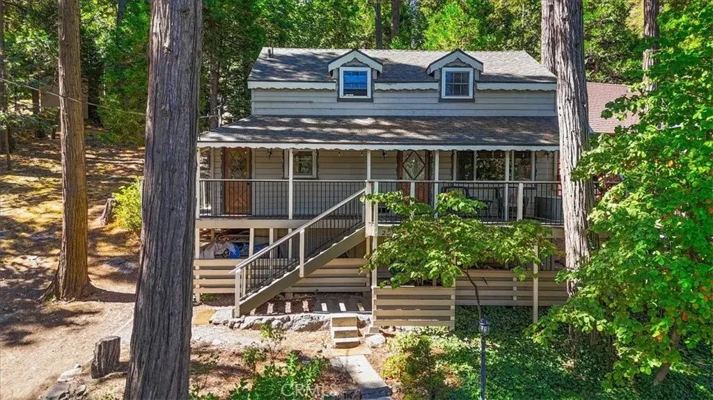 Welcome to your mountain home, ideally situated in Crestline, CA, just under two hours from Los Angeles, Orange, and San Diego counties. This spacious 4-bedroom, 2-bathroom residence is located on a double lot (9,320 square feet combined) along a quiet street, walking distance to town and the serene Lake Gregory. The open-concept kitchen, living, and dining area creates a welcoming space for gatherings, ensuring everyone stays connected. A separate mudroom entrance helps keep dirt and snow from being tracked inside, while a wrap-around deck offers ample outdoor space to relax and enjoy the tranquil, tree-lined views. In addition to the 2-car parking in front of the home, the expansive double lot provides plenty of parking and offers potential for future expansion, such as adding a garage or other amenities. This mountain retreat is perfect for anyone looking to escape the hustle and bustle while still being conveniently close to city life. The following is included with an acceptable offer. Portable A/C, a window A/C and a snow blower. Plus, all furnishings except for couch and TVs are negotiable. 5 new queen mattresses 1 new full size mattress 4 new queen bed frames 3 new twin trundles Kitchen nook and bar stools.