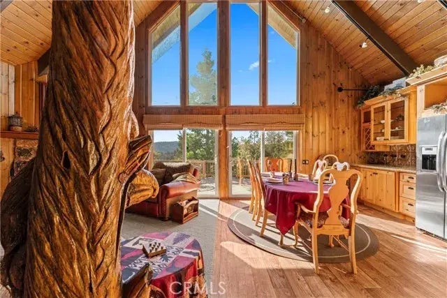 Welcome to your dream cabin retreat! This charming level-entry prow style home boasts a stunning 2-story wall of windows that offers lake views, bringing the beauty of nature indoors. Nestled in a peaceful, desirable neighborhood, this property offers both privacy and tranquility. Step inside to find vaulted ceilings and an open, airy layout. The updated kitchen features soft-close cabinets, a unique hide away table, and gas stove and oven, perfect for the home chef, while the cozy wood-burning fireplace adds to the warm, rustic ambiance. A convenient mudroom entrance, and with only 5 steps to the front door, makes access a breeze. The level circular driveway ensures ample parking, even for guests. Enjoy outdoor living on the expansive Trex deck, ideal for entertaining or simply relaxing with the lake as your backdrop. The lower level includes a spacious great/game room and large laundry/storage room , making it the ultimate getaway. Sold furnished, this immaculate home is move-in ready! Plus, it includes coveted lake rights, providing you with exclusive access to the lake. Whether youre looking for a full-time residence or a weekend escape, this home offers the perfect blend of luxury, comfort, and nature. Dont miss out!