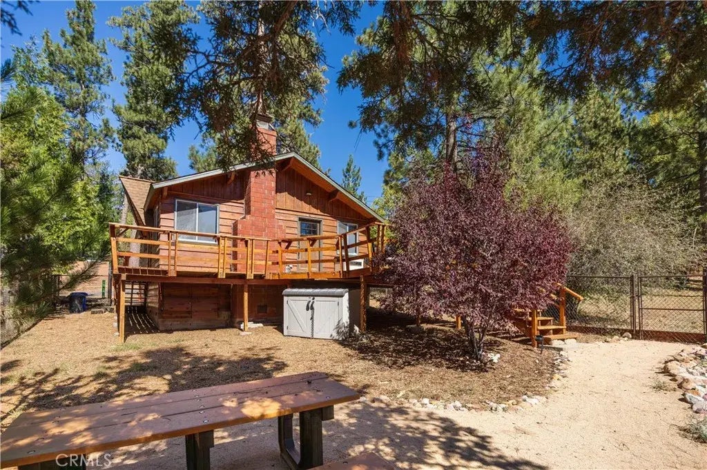 This charming mountain cabin is the perfect vacation home or year-round residence. Located in a peaceful neighborhood, this cozy cabin offers stunning views of the surrounding forest and mountains. Spacious open floor plan with wood ceilings, a brick fireplace, and windows that bring in plenty of natural light. Outside, you'll find a spacious deck perfect for enjoying the fresh mountain air and hosting summer BBQs. Just a short drive away, you'll find the bustling village of Big Bear Lake with its shops, restaurants, and outdoor recreational activities. Don't miss the opportunity to make this charming cabin your own slice of mountain paradise!