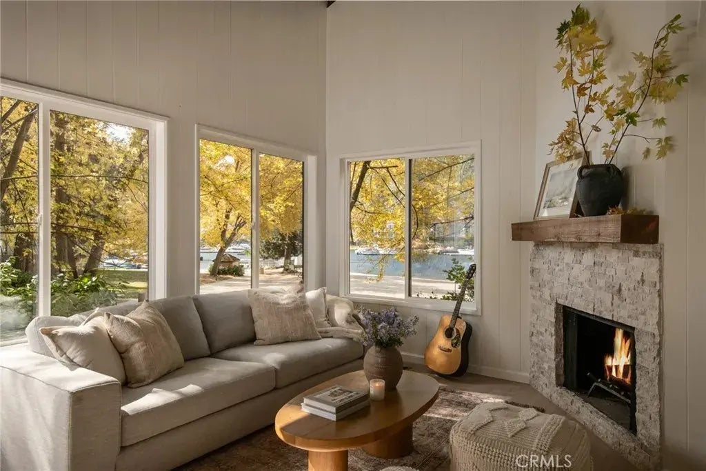 Discover a rare gem in Lake Arrowheads exclusive Meadow Bay North! This completely renovated, tastefully designed lakefront townhouse includes its own easy access dock slip in the calm waters of Meadow Bay, perfect for effortless lake adventures. Nestled within a private, gated community spanning 17 acres, this 4-bedroom, 3-bathroom townhome offers over 2,000 sqft of beautifully curated space. From the moment you enter, youre greeted by a spacious, open concept main level designed for effortless living. With the unique option for single level living, this floor includes a bedroom and full bath, making it as practical as it is luxurious. The kitchen, dining, and living areas flow seamlessly, bathed in natural light from large windows that frame breathtaking views of the lake and beach. Relax by the cozy fireplace or step out onto the expansive Trex deck, where you can enjoy morning coffee, sunset gatherings, or peaceful evenings overlooking the water. Upstairs, youll find two more bedrooms and a full bath, offering flexibility for guests. On the lower level, a large game room area with a wet bar, opens directly to the sandy beach - literally, step right out onto the sand and enjoy the ultimate lakeside experience. This level also features an ensuite bedroom, giving it a sense of privacy and independence from the rest of the house. Its perfect for hosting guests or even as a full time rental space, with all the comfort and seclusion anyone could want. What truly sets this property apart is its rare accessibility, with level entry from the parking area to the front door and a