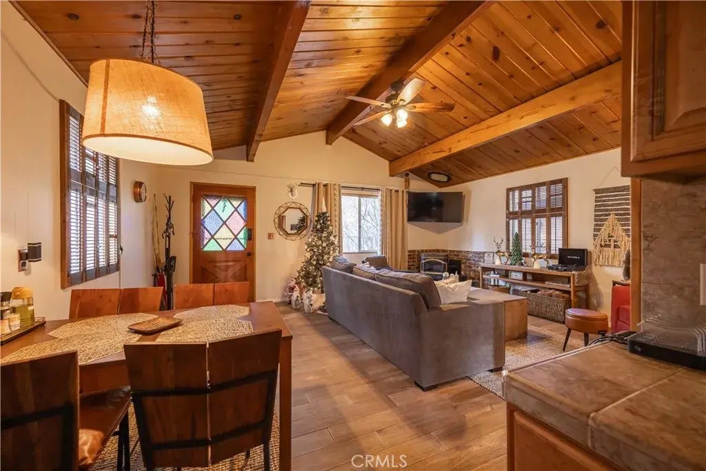 Located in Big Bear, this charming home offers mountain views and a tranquil setting. Boasting 1 bedrooms and 1 bathroom, this cozy cabin features a nice living area with a beautiful Wood vaulted ceilings, and a pellet stove, perfect for cold nights. The kitchen is equipped with everything you need. Outside, you'll find a quaint yard for entertaining and enjoying the fresh mountain air and a hot tub! With easy access to hiking trails, skiing, and all the amenities of Big Bear, this home is the perfect mountain retreat. Don't miss your chance to make this your dream home!