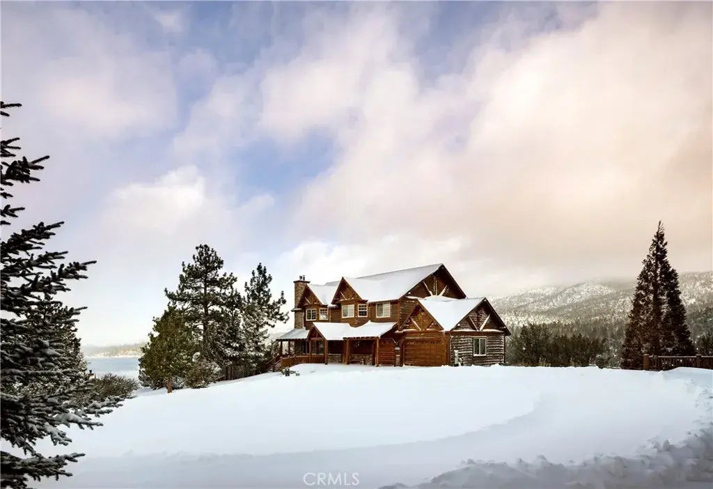 Panoramic water views & awe-inspiring sunsets! Experience unparalleled views in Castle Glen Estates! Revel in breathtaking 180-degree lake vistas plus a peek at the ski slopes from this sunlit, southern-exposed cul-de-sac home. Enjoy the serene lake views from the spacious great room or the generous master suite with vaulted ceilings and an attached office/reading nook upstairs. Cozy up to one of the fireplaces on those chilly nights or beat the summer heat with central air conditioning. The gourmet kitchen boasts tumbled stone floors, Alderwood cabinets, stainless steel appliances, and granite counters. Enjoy gazing right down the lake from the hot tub on the wrap-around decking that sets a relaxing tone. With an additional loft family room with a sleeper sofa and game nook, theres plenty of space to entertain and unwind. Three well-appointed guest bedrooms and comfortable bathrooms will make your guests feel right at home. Crafted by renowned builder Karl Francis, this home features beautiful finishes, T&G ceilings, and wood accents throughout. The attached 3-car garage has plenty of room for your boat, toys, and vehicles. Need a 5th bedroom? The layout affords a simple option to create one! Theres even plenty of space in the build-up area for building a theater room or many other options. The central location provides easy access to everything Big Bear has to offer. Whether as a vacation rental, a personal retreat, or both, this is the ideal location & setting!