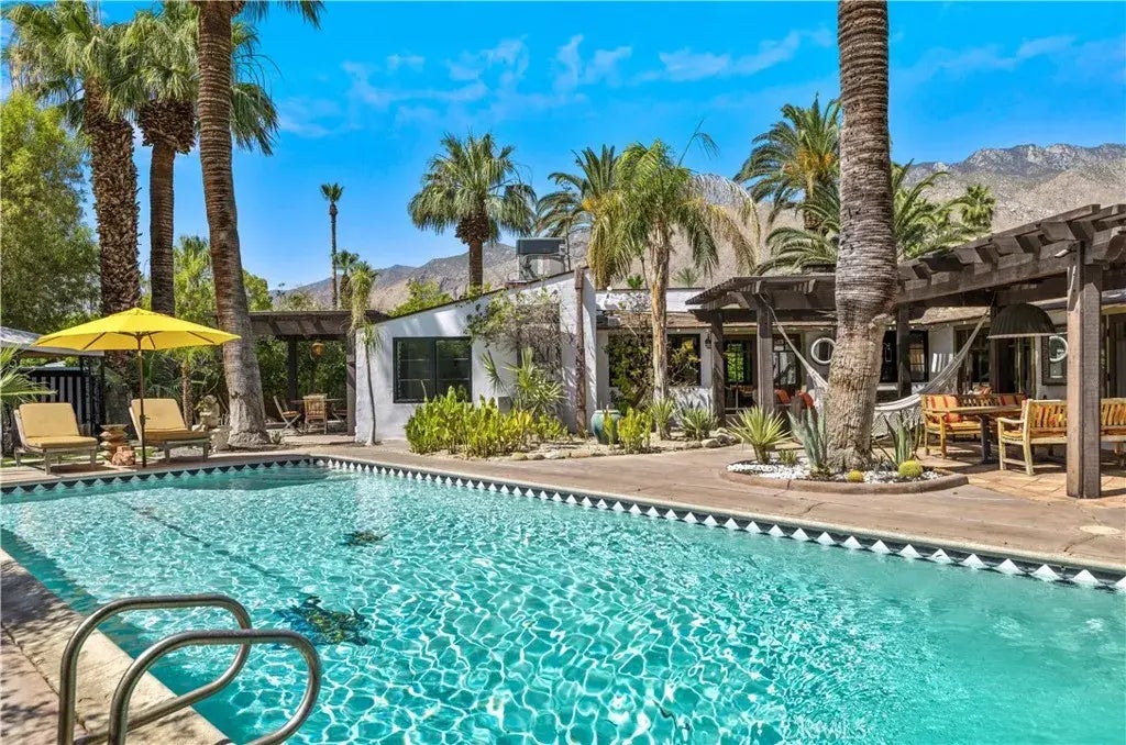 Villahermosa is a historic 3-bedroom, 3-bath Spanish Hacienda located near Ruth Hardy Park in Palm Springs. Built in 1936, it's believed to have been the guest house of a famous celebrity. This estate property has a private, walled-in lot that feels like your own park, with a tall ficus hedge for privacy. Majestic mountain views and a walkable distance to downtown add to the appeal. Step through the stained-glass front door and feel the warmth and soul of this classic hacienda. The brick fireplace in the living room is just one of many beautiful features. The kitchen is fully equipped with brand new, chef-quality appliances. Many upgrades include, brand new high-end metal windows, motorized driveway gate, Aqualink pool automation, and updated bathrooms that retain their original charm. French doors in every major room open to the large, private backyard with a 36-foot swimming pool and hot tub. Enjoy fresh citrus from the grapefruit, pomegranate, tangerine, and lime trees. Several outdoor seating and dining areas invite you to relax and enjoy the property. The current owners have lovingly maintained and enjoyed the home for 21 years.