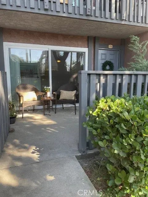 Move-in Ready!!! Experience "Resort Style Living" in a pristine 2-bedroom 1-bath condo inside the security-gated Pacific Pines Condominiums! Located in a very private front corner of the complex, entertain and relax on one of the largest secluded entry patios landscaped with mature potted trees and plants. Dual pane sliding glass doors enhance the flow from the patio into the spacious open living and dining areas featuring sleek wood style and stone tile floors. Galley-kitchen complete with all stainless-steel appliances, stone countertops, pass-through breakfast bar seating and dining room. The two generous sized carpeted bedrooms have plenty of storage in the enormous floor to ceiling closets with triple sliding glass mirrored doors, ceiling fans and wide faux wood blinds. Stylish bathroom layout accommodates multiple people with an open granite countertop vanity area adjoining a separate private bathroom updated with custom stone tile and custom sliding glass tub/shower enclosure. Complex offers an abundance of amenities that augment the luxury living experience with two swimming pools and spa, a Fitness Center with yoga room, six BBQ areas with outdoor stone dining tables & benches, Community Laundry Room with numerous washers and dryers. The Community Clubhouse can be reserved for larger group entertaining and celebrating special occasions offering a full kitchen, comfortable seating area with tv, game room and cozy fireplace. Additionally, Pacific Pines is a pet-friendly community with designated pet disposal stations making it perfect for animal lovers. Centrally loc